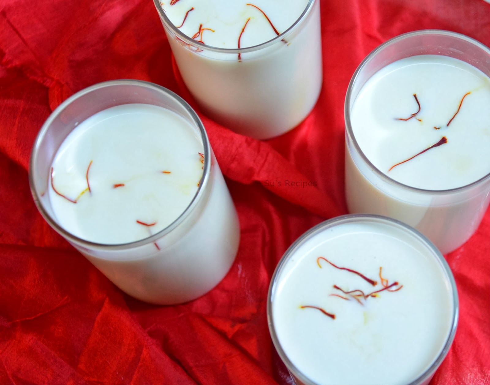 6. Now refrigerate the Thandai and while serving just pour them in the glass and garnish them with saffron strands. So the authentic Classic Thandai / Kesar Thandai is ready to relish chilled.
